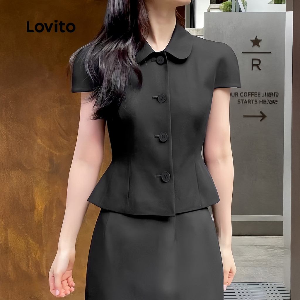Lovito Blusa Elegante Clássica e Versátil com Textura de Botões Blusa Preta para Primavera/verão para Mulheres L144AD215