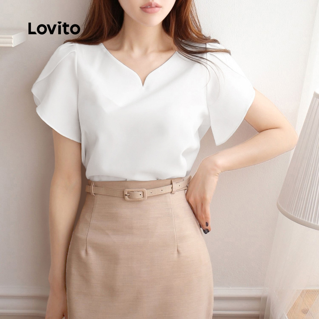Lovito Blusa elegante com babados lisos para mulheres L132ED614\3