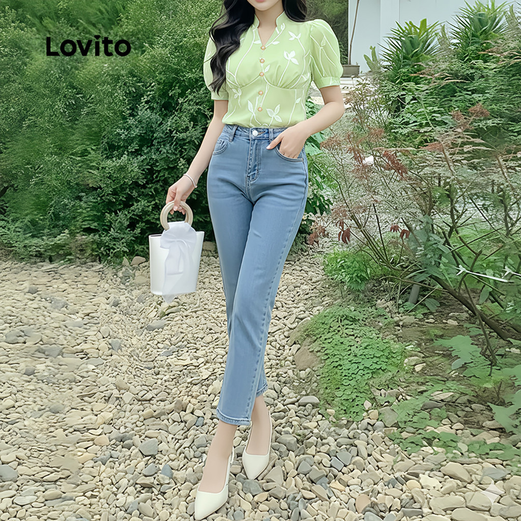 Lovito Blusa Elegante com Botão Primavera/verão para Mulheres L172LD1269