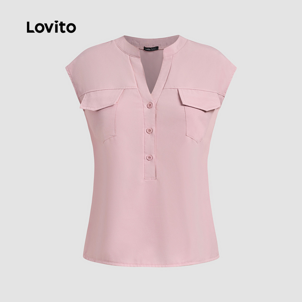 Lovito Blusa Elegante Com Botões Lisos E Bolso Falso, Blusa De Verão Para Mulheres L133ED947