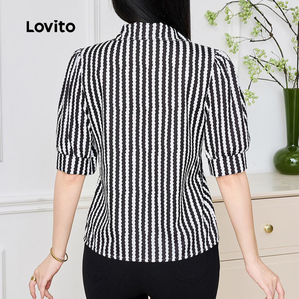 ✅DESTAQUES -❤️Botão frontal -❤️Lazer -❤️trajeto -❤️Macio e confortável -❤️Primavera e verão ✅DESCRIÇÕES Estampa / Padrão:Listrado Estilo:Elegante Tamanho Plus:Não Material:Poliéster Composição:100% Poliéster Tipo de modelagem:fit regular Transparência:Não Esticar:Não esticado Feito na China ✅O PACOTE INCLUI 1XBlusa ✅INTRODUÇÃO LOVITO A Lovito é uma marca em crescimento que acredita no poder das meninas. Estamos comprometidos em oferecer opções de roupas fashion e acessíveis, para todos os estilos, necessidades e identidades. Acreditamos que a moda deve ser divertida, liberadora e fazer você se sentir incrível. Afinal, o melhor acessório para qualquer look é a autoconfiança! ✅NOTAS DE COMPRA Antes de comprar, dê uma olhadinha na tabela de medidas disponível no site. Lembre-se de que, por serem feitas manualmente, as medidas podem variar de 1 a 2 cm. As cores dos produtos também podem ter pequenas diferenças em relação às fotos, dependendo da iluminação e das configurações do seu dispositivo. Siga nossa loja e conheça novos itens e as melhores ofertas para você!! Se você tiver alguma dúvida, converse conosco e responderemos o mais rápido possível.😊
