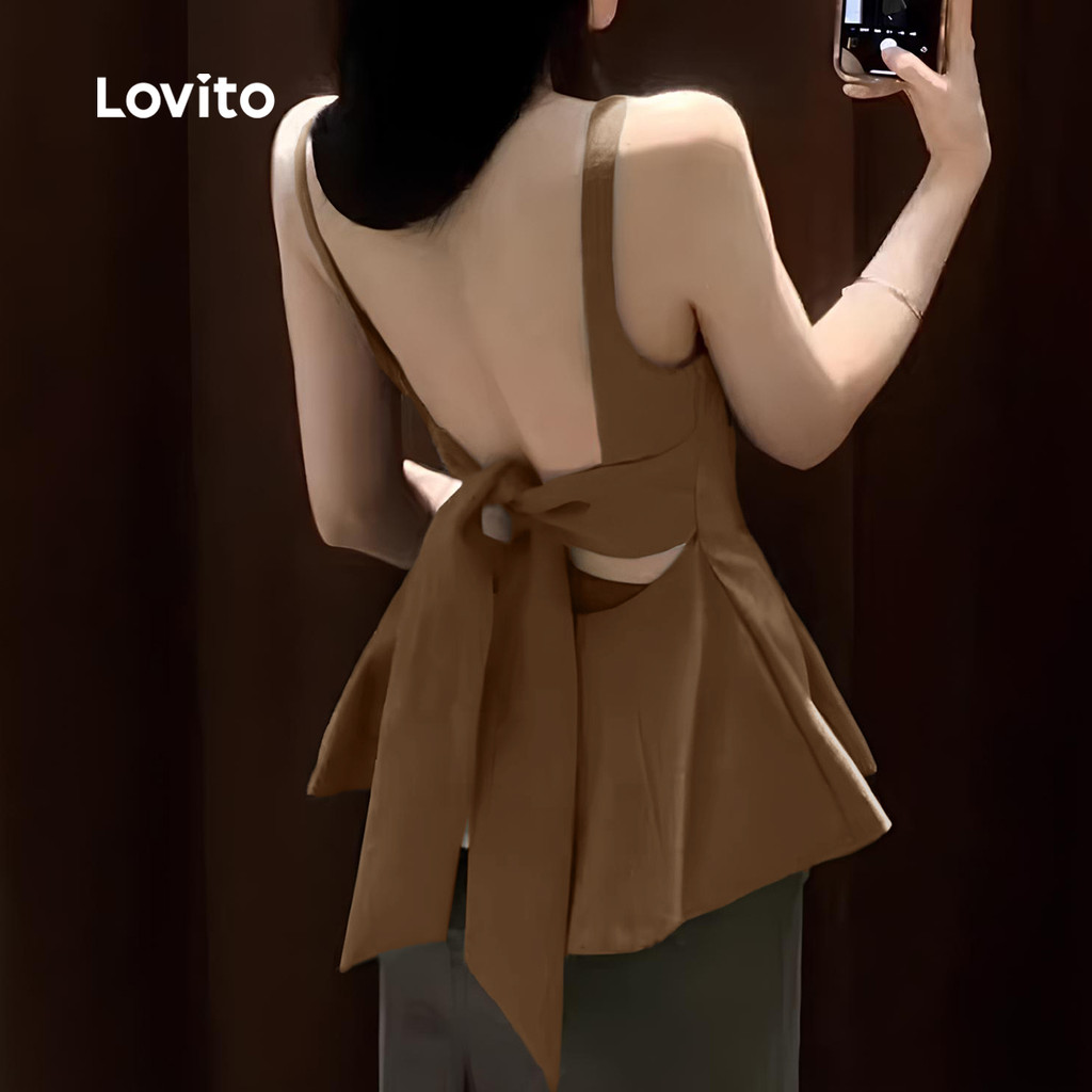 Lovito Blusa Elegante com Laço Nas Costas Sem Costas Primavera/verão Marrom para Mulheres L142LD443