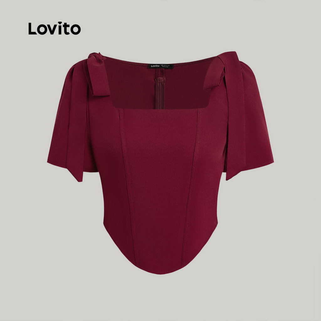 Lovito Blusa Elegante Com Laço Vermelha Para Mulheres Ideal Para a Primavera/verão L149ED309