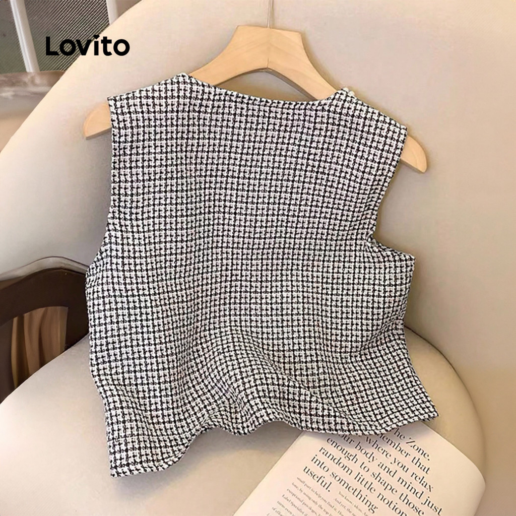 ✅DESTAQUES -❤️Pérolas -❤️Botão frontal -❤️Exótico -❤️Boa Textura -❤️Primavera e verão ✅DESCRIÇÕES Estampa / Padrão:Gingham Estilo:Elegante Tamanho Plus:Não Material:Poliéster Composição:100% Poliéster Tipo de modelagem:Regular Fit Transparência:Não Esticar:Não elástico Feito na China ✅O PACOTE INCLUI 1XPrincipal ✅INTRODUÇÃO LOVITO A Lovito é uma marca em crescimento que acredita no poder das meninas. Estamos comprometidos em oferecer opções de roupas fashion e acessíveis, para todos os estilos, necessidades e identidades. Acreditamos que a moda deve ser divertida, liberadora e fazer você se sentir incrível. Afinal, o melhor acessório para qualquer look é a autoconfiança! ✅NOTAS DE COMPRA Antes de comprar, dê uma olhadinha na tabela de medidas disponível no site. Lembre-se de que, por serem feitas manualmente, as medidas podem variar de 1 a 2 cm. As cores dos produtos também podem ter pequenas diferenças em relação às fotos, dependendo da iluminação e das configurações do seu dispositivo. Siga nossa loja e conheça novos itens e as melhores ofertas para você!! Se você tiver alguma dúvida, converse conosco e responderemos o mais rápido possível.😊