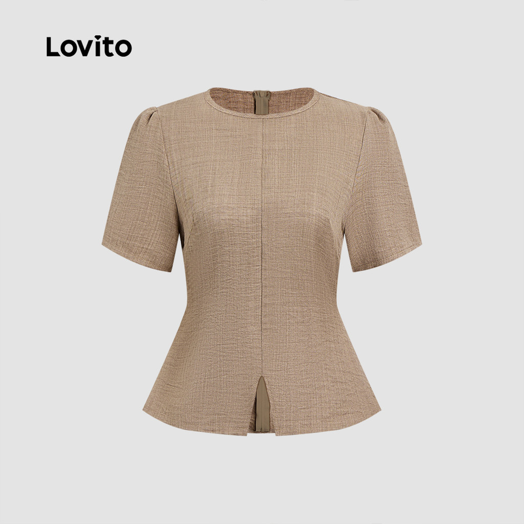 Lovito Blusa Elegante com Zíper Frente Dividida Primavera/verão Blusa Khaki para Mulheres L172LD691