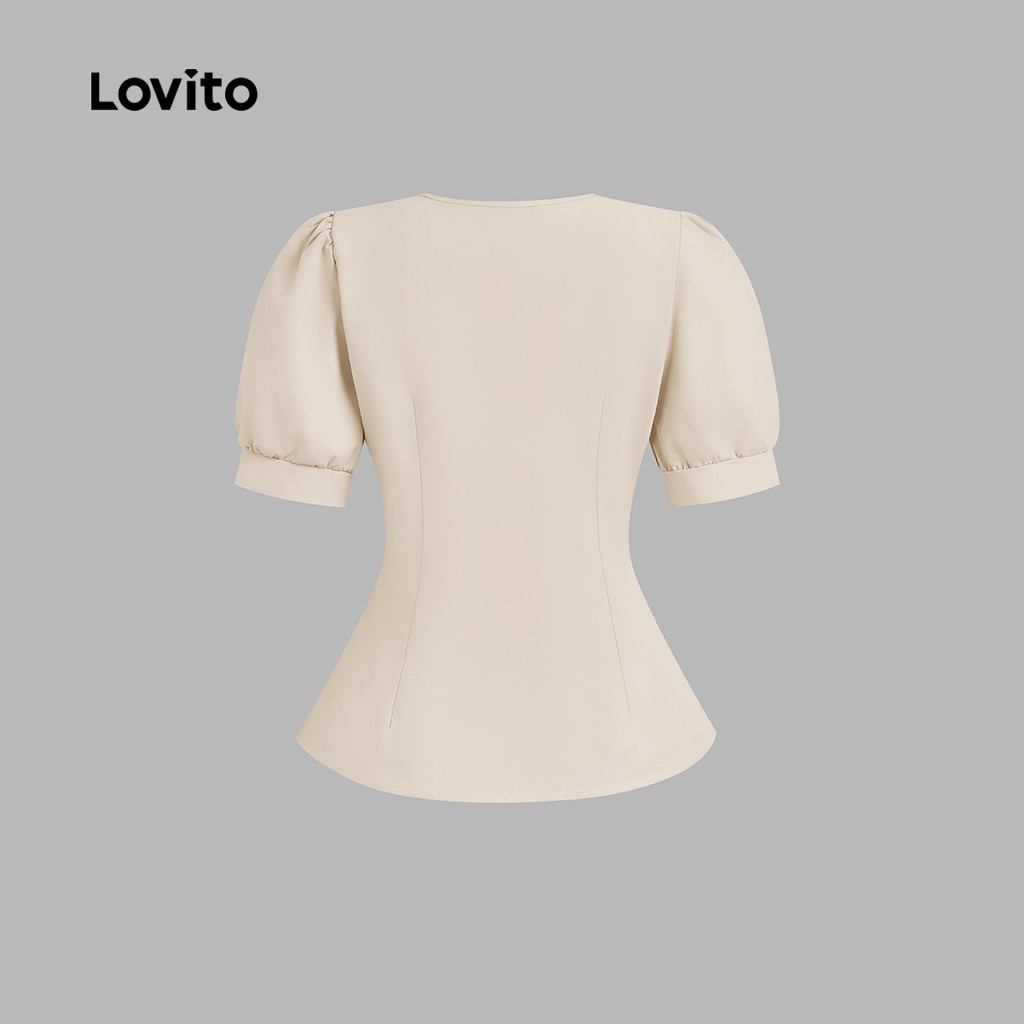 Lovito Blusa Elegante De Damasco Com Babados E Botões Lisos Primavera/Verão Para Mulheres L134ED063