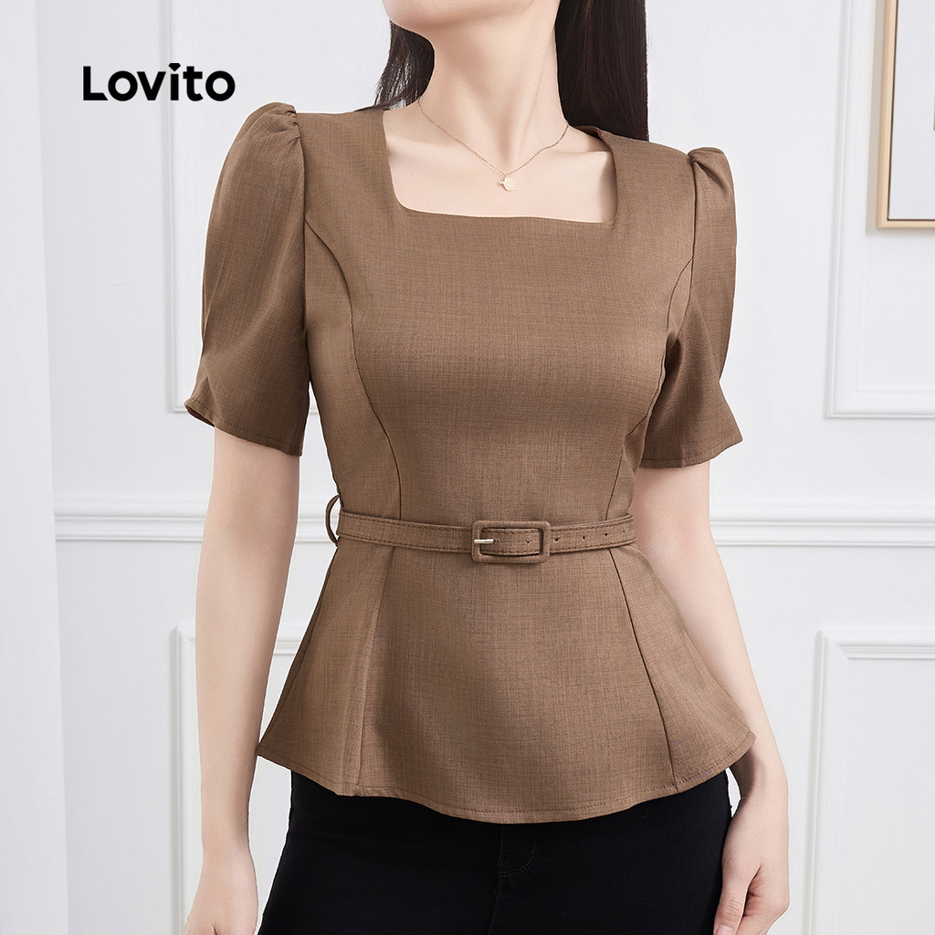 Lovito Blusa Elegante De Verão/Primavera Com Cinto Para Mulheres L128ED110