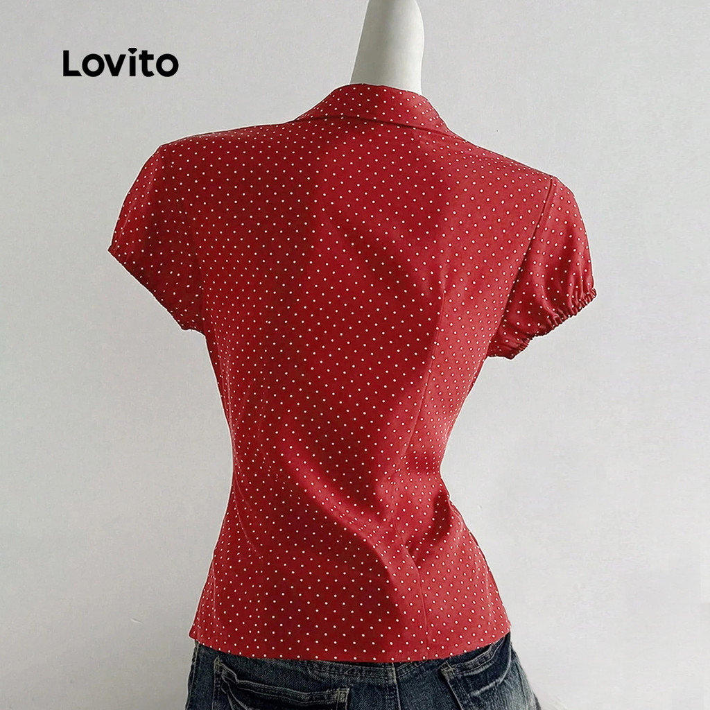 Lovito Blusa Elegante Festas Clássica E Versátil Com Estampa De Bolinhas E Botões Primavera/verão Cor Vermelha L155AD400