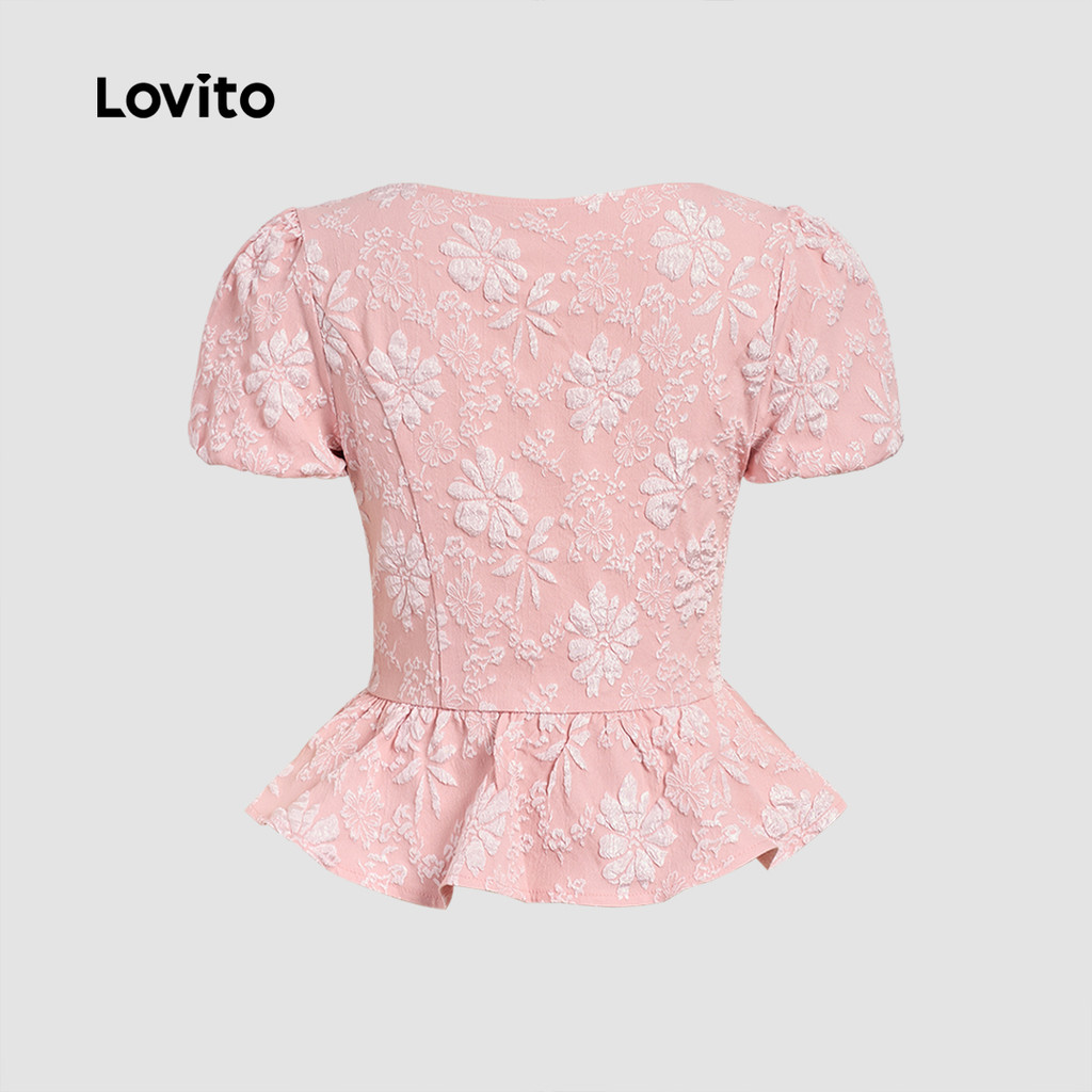 Lovito Blusa Elegante Floral Com Botões Jacquard Pérolas Primavera/Verão Rosa Para Mulheres L135A2D158