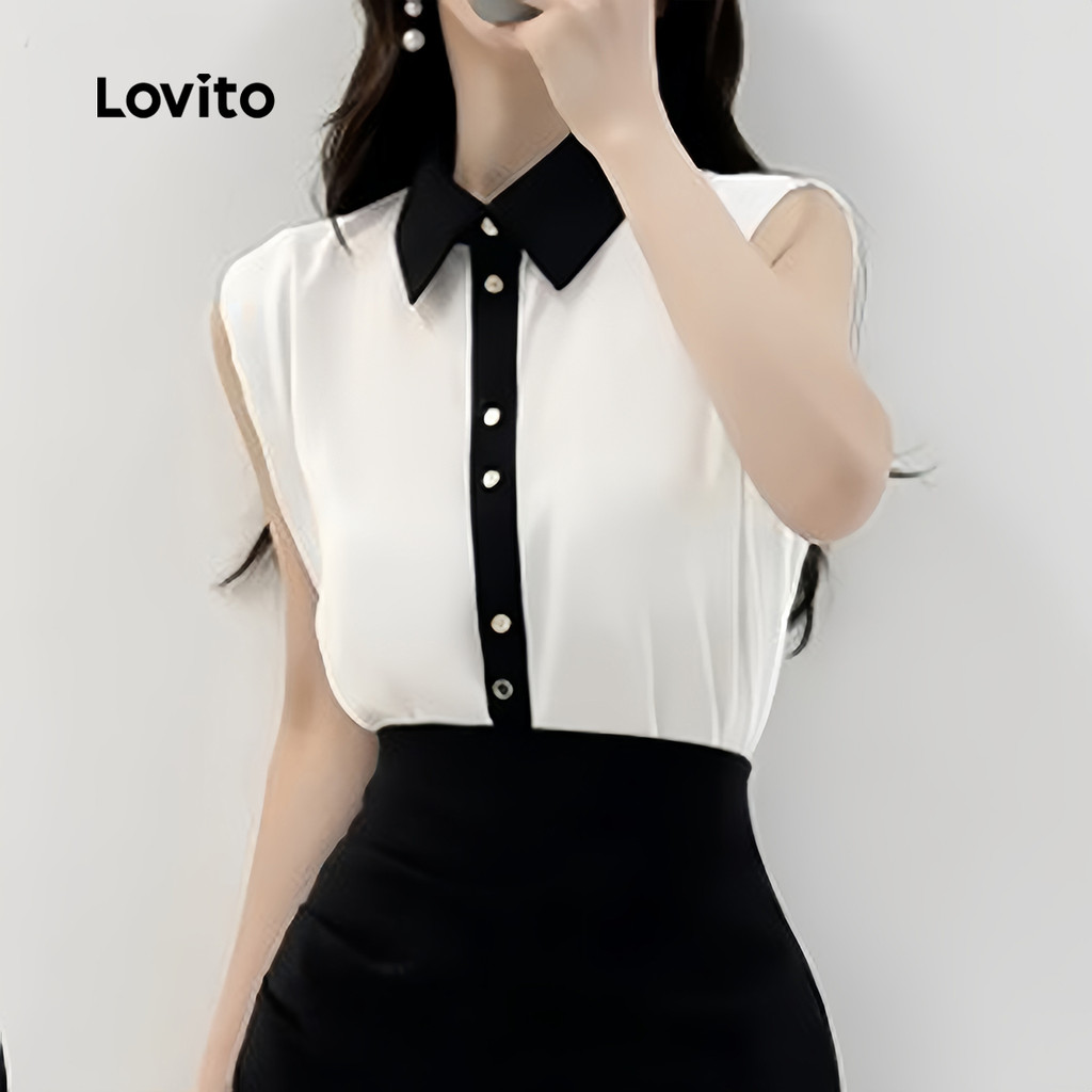 Lovito Blusa Elegante Lisa Com Blocos De Cores Para Verão/primavera Para Mulheres L132ED542