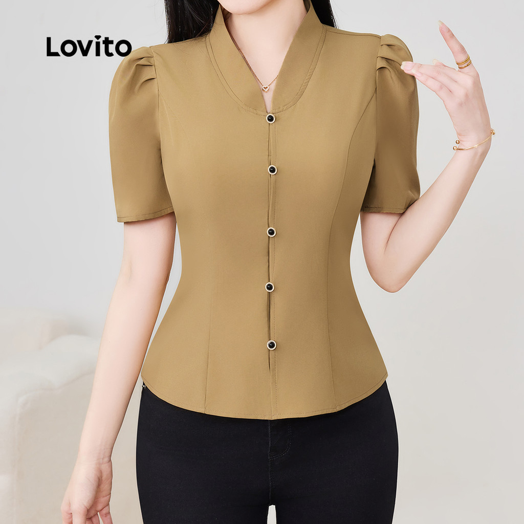 ✅DESTAQUES -❤️PlissadoPlissado -❤️BotãoBotão -❤️Boa Textura -❤️Primavera e verão ✅DESCRIÇÕES Estampa / Padrão:Plain Estilo:Elegante. Tamanho Plus:No Material:Poliéster Composição:100%Polyester Tipo de modelagem:Slim Fit. Transparência:No Esticar:Non-stretch Feito na China ✅O PACOTE INCLUI 1XBlusa ✅INTRODUÇÃO LOVITO A Lovito é uma marca em crescimento que acredita no poder das meninas. Estamos comprometidos em oferecer opções de roupas fashion e acessíveis, para todos os estilos, necessidades e identidades. Acreditamos que a moda deve ser divertida, liberadora e fazer você se sentir incrível. Afinal, o melhor acessório para qualquer look é a autoconfiança! ✅NOTAS DE COMPRA Antes de comprar, dê uma olhadinha na tabela de medidas disponível no site. Lembre-se de que, por serem feitas manualmente, as medidas podem variar de 1 a 2 cm. As cores dos produtos também podem ter pequenas diferenças em relação às fotos, dependendo da iluminação e das configurações do seu dispositivo. Siga nossa loja e conheça novos itens e as melhores ofertas para você!! Se você tiver alguma dúvida, converse conosco e responderemos o mais rápido possível.