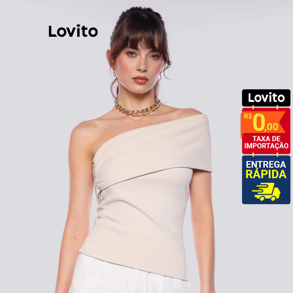 Lovito Blusa Elegante Um Ombro Só Feminina Moda LB980BRL1010