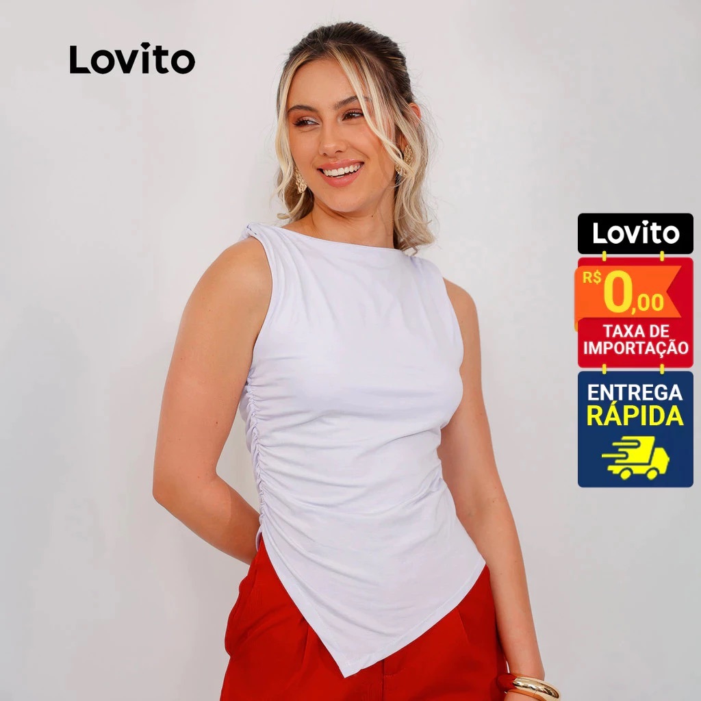 ✅DESTAQUES -❤️ Regata Elegante Barra Assimétrica ✅DESCRIÇÕES Estampa: Liso Coleção: Primavera, Verão Tamanho Plus: Não Composição: 96% Viscose, 4% Elastano Transparência: Sem Transparência Elasticidade: Com Elasticidade Região de Origem: Brasil ✅O PACOTE INCLUI 1 Regata ✅INTRODUÇÃO À LOVITO A Lovito é uma marca emergente que acredita no poder feminino, comprometida em oferecer opções de roupas elegantes e acessíveis para diferentes estilos, necessidades e identidades. Acreditamos que a moda deve ser divertida, libertadora e fazer você se sentir bem. Afinal, o melhor acessório para qualquer look é a autoconfiança. ✅NOTAS DE COMPRA Compare suas medidas com nossa tabela disponível no site. Lembre-se de que, por serem feitas manualmente, as medidas podem variar de 1 a 2 cm. As cores dos produtos também podem ter pequenas diferenças em relação às fotos, dependendo da iluminação e das configurações do seu dispositivo. Siga nossa loja e conheça novos itens e as melhores ofertas para você!! Se você tiver alguma dúvida, entre em contato conosco e responderemos o mais rápido possível.😊