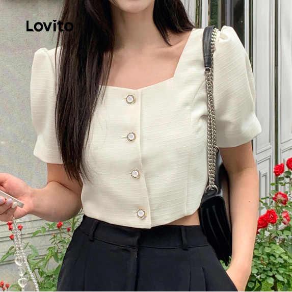 Lovito Blusa Feminina Casual com Fivela de Metal para Verão e Primavera L129ED081
