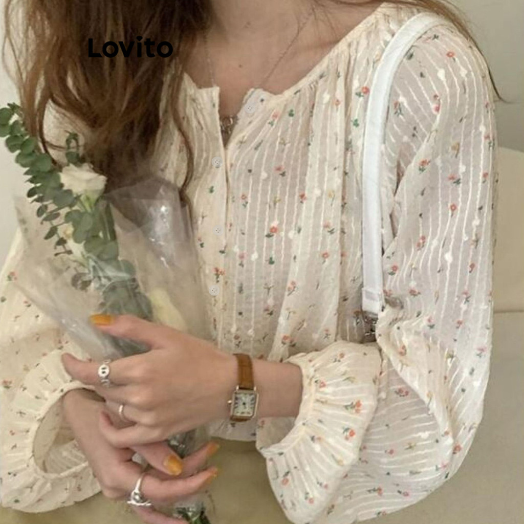 Lovito Blusa Feminina Casual Estampa Floral Ditsy LNE27079