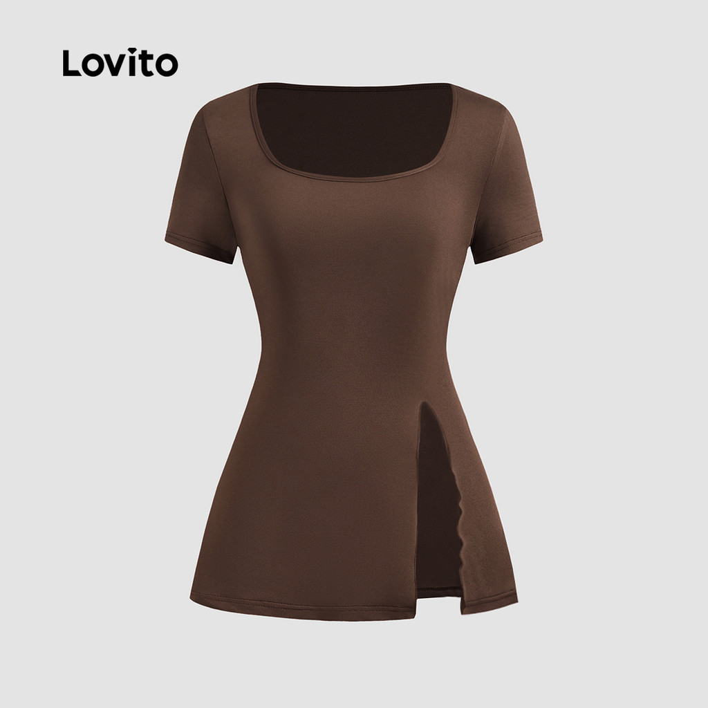 Lovito Blusa Feminina Casual Lisa Decote Aberto L121AD1187