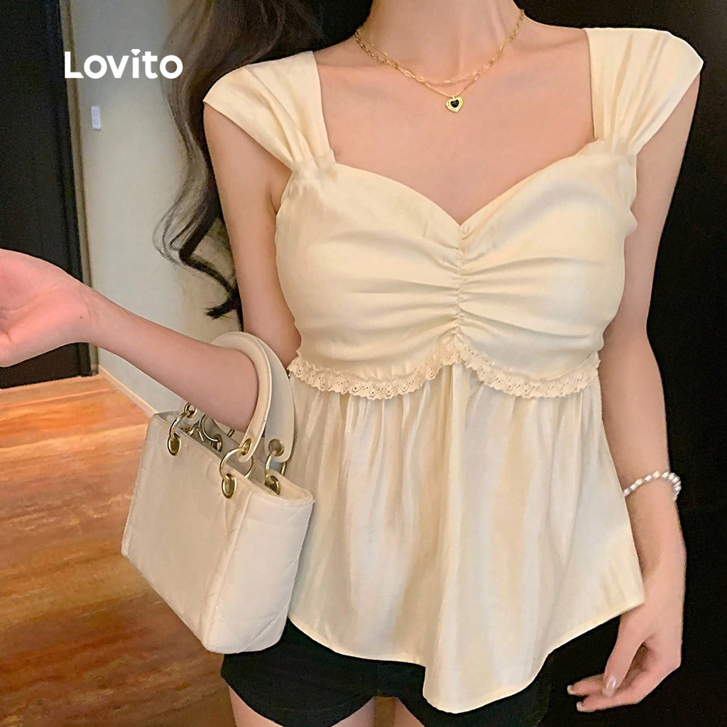✅DESTAQUES -❤️Babado -❤️Renda -❤️Macio e confortável -❤️Primavera e verão ✅DESCRIÇÕES Estampa / Padrão:Plano Estilo:Casual Tamanho Plus:Não Material:Poliéster Composição:100% Poliéster Tipo de modelagem: Regular Fit Transparência:Não Esticar:Alongamento médio Feito na China ✅O PACOTE INCLUI 1XBlusa ✅INTRODUÇÃO LOVITO A Lovito é uma marca em crescimento que acredita no poder das meninas. Estamos comprometidos em oferecer opções de roupas fashion e acessíveis, para todos os estilos, necessidades e identidades. Acreditamos que a moda deve ser divertida, liberadora e fazer você se sentir incrível. Afinal, o melhor acessório para qualquer look é a autoconfiança! ✅NOTAS DE COMPRA Antes de comprar, dê uma olhadinha na tabela de medidas disponível no site. Lembre-se de que, por serem feitas manualmente, as medidas podem variar de 1 a 2 cm. As cores dos produtos também podem ter pequenas diferenças em relação às fotos, dependendo da iluminação e das configurações do seu dispositivo. Siga nossa loja e conheça novos itens e as melhores ofertas para você!! Se você tiver alguma dúvida, converse conosco e responderemos o mais rápido possível.😊