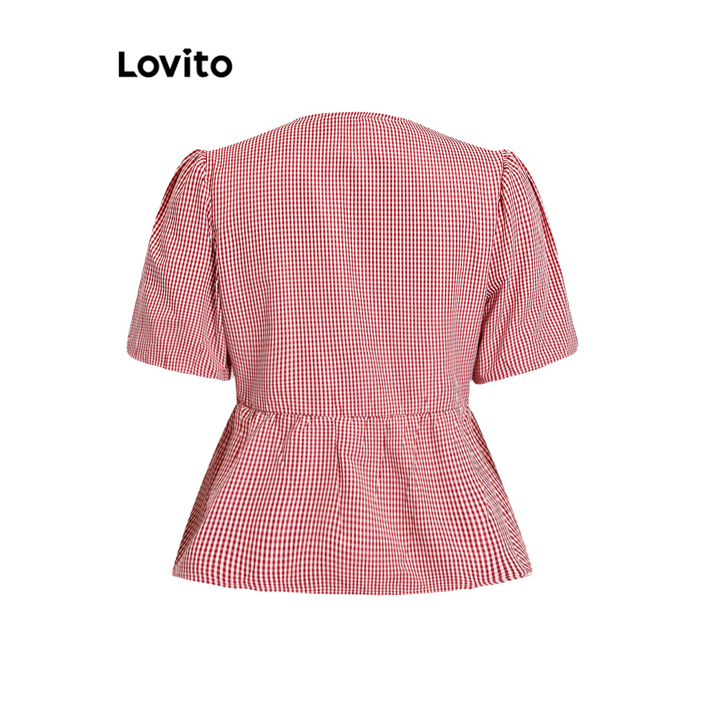 Lovito Blusa Feminina De Verão Estampada Xadrez Com Amarração L105MD061