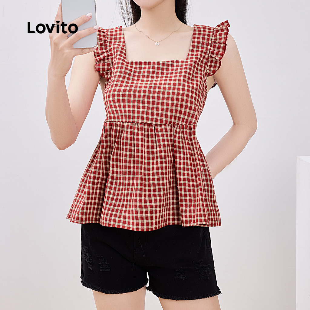 ✅DESTAQUES -❤️Amarre -se -❤️Babado -❤️Boa textura -❤️Primavera e verão ✅DESCRIÇÕES Estampa / Padrão:xadrez Estilo:fofo Tamanho Plus:Não Material:Poliéster Composição:100% Poliéster Tipo de modelagem: ajuste regular Transparência:Não Esticar:Não esticável Feito na China ✅REFERÊNCIA DE MODELAGEM A modelo está vestindo: P Altura: 165 cm Peso: 55 kg Busto: 88 cm Cintura: 68 cm Quadris: 93 cm ✅O PACOTE INCLUI 1XBlusa ✅INTRODUÇÃO LOVITO A Lovito é uma marca em crescimento que acredita no poder das meninas. Estamos comprometidos em oferecer opções de roupas fashion e acessíveis, para todos os estilos, necessidades e identidades. Acreditamos que a moda deve ser divertida, liberadora e fazer você se sentir incrível. Afinal, o melhor acessório para qualquer look é a autoconfiança! ✅NOTAS DE COMPRA Antes de comprar, dê uma olhadinha na tabela de medidas disponível no site. Lembre-se de que, por serem feitas manualmente, as medidas podem variar de 1 a 2 cm. As cores dos produtos também podem ter pequenas diferenças em relação às fotos, dependendo da iluminação e das configurações do seu dispositivo. Siga nossa loja e conheça novos itens e as melhores ofertas para você!! Se você tiver alguma dúvida, converse conosco e responderemos o mais rápido possível.😊