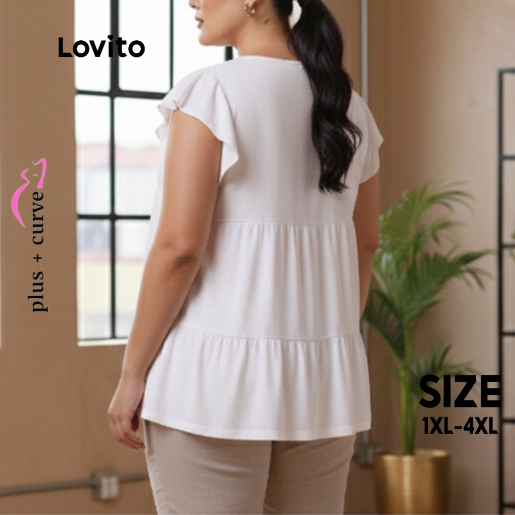 Lovito Blusa Feminina Manga Curta Plus Size Curve Com Babados TSB359BRL388