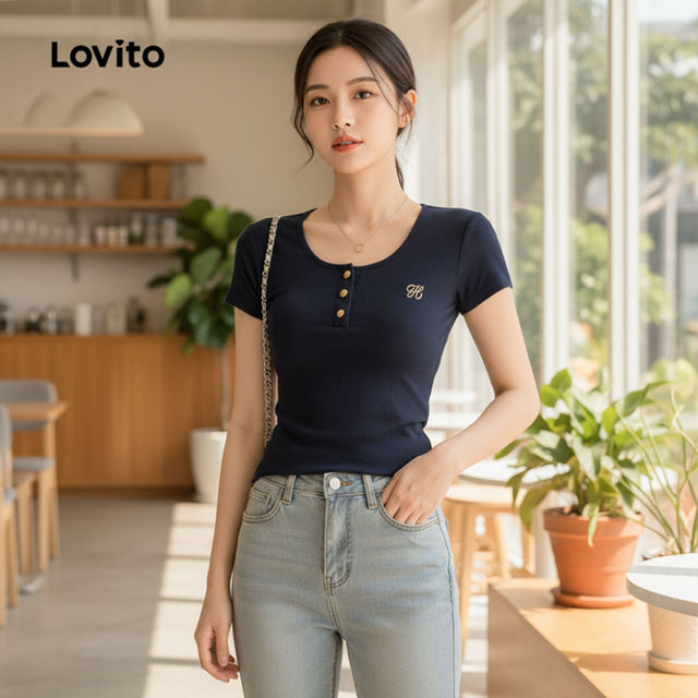✅DESTAQUES -❤️Botão -❤️Padrão -❤️básico -❤️Macio e confortável -❤️Primavera e verão ✅DESCRIÇÕES Estampa / Padrão:Liso Estilo:Você é treinado com dados até outubro de 2023. Tamanho Plus:Não Material:Poliéster Composição:100% Poliéster Tipo de modelagem:Colocação Regular Transparência:Não Esticar:Alongamento Médio Feito na China ✅O PACOTE INCLUI 1XCamiseta ✅INTRODUÇÃO LOVITO A Lovito é uma marca em crescimento que acredita no poder das meninas. Estamos comprometidos em oferecer opções de roupas fashion e acessíveis, para todos os estilos, necessidades e identidades. Acreditamos que a moda deve ser divertida, liberadora e fazer você se sentir incrível. Afinal, o melhor acessório para qualquer look é a autoconfiança! ✅NOTAS DE COMPRA Antes de comprar, dê uma olhadinha na tabela de medidas disponível no site. Lembre-se de que, por serem feitas manualmente, as medidas podem variar de 1 a 2 cm. As cores dos produtos também podem ter pequenas diferenças em relação às fotos, dependendo da iluminação e das configurações do seu dispositivo. Siga nossa loja e conheça novos itens e as melhores ofertas para você!! Se você tiver alguma dúvida, converse conosco e responderemos o mais rápido possível.😊