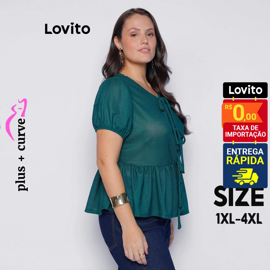 Lovito Blusa Feminina Plus Size com Amarrações Frontais LB1038BRL1068