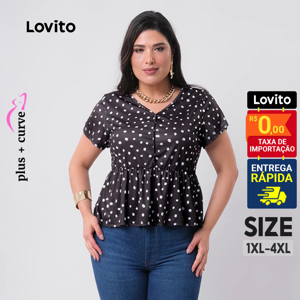 ✅DESTAQUES -❤️Toque Suave ✅DESCRIÇÕES Estampa: Poá Estilo: Casual Tamanho Plus Size: Sim Composição: 100% Poliéster Tipo de Caimento: Regular Transparência: Não Elasticidade: Leve Elasticidade Região de Origem: Brasil ✅O PACOTE INCLUI 1x Blusa ✅INTRODUÇÃO DA LOVITO Lovito é uma marca emergente que acredita no poder das garotas, comprometida em oferecer roupas da moda e acessíveis para diferentes estilos, necessidades e identidades. Acreditamos que a moda deve ser divertida, libertadora e te fazer sentir incrível. Afinal, o melhor acessório de qualquer look é a autoconfiança. ✅NOTAS DE COMPRA Compare suas medidas com nossa tabela disponível no site. Lembre-se de que, por serem feitas manualmente, as medidas podem variar de 1 a 2 cm. As cores dos produtos também podem ter pequenas diferenças em relação às fotos, dependendo da iluminação e das configurações do seu dispositivo. Siga nossa loja e conheça novos itens e as melhores ofertas para você!! Se você tiver alguma dúvida, converse conosco e responderemos o mais rápido possível.😊