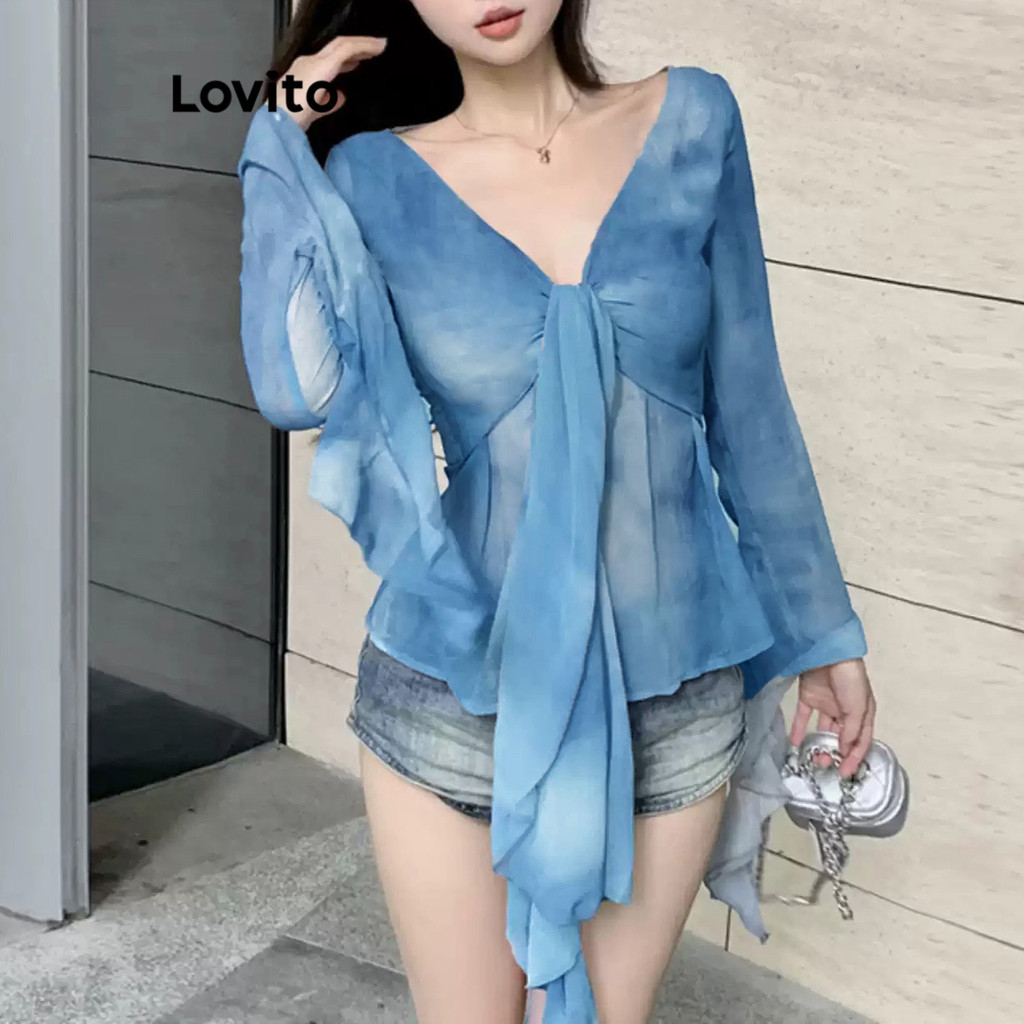 Lovito Blusa Feminina Tie Dye Contraste com Babados Frontais L106AD939