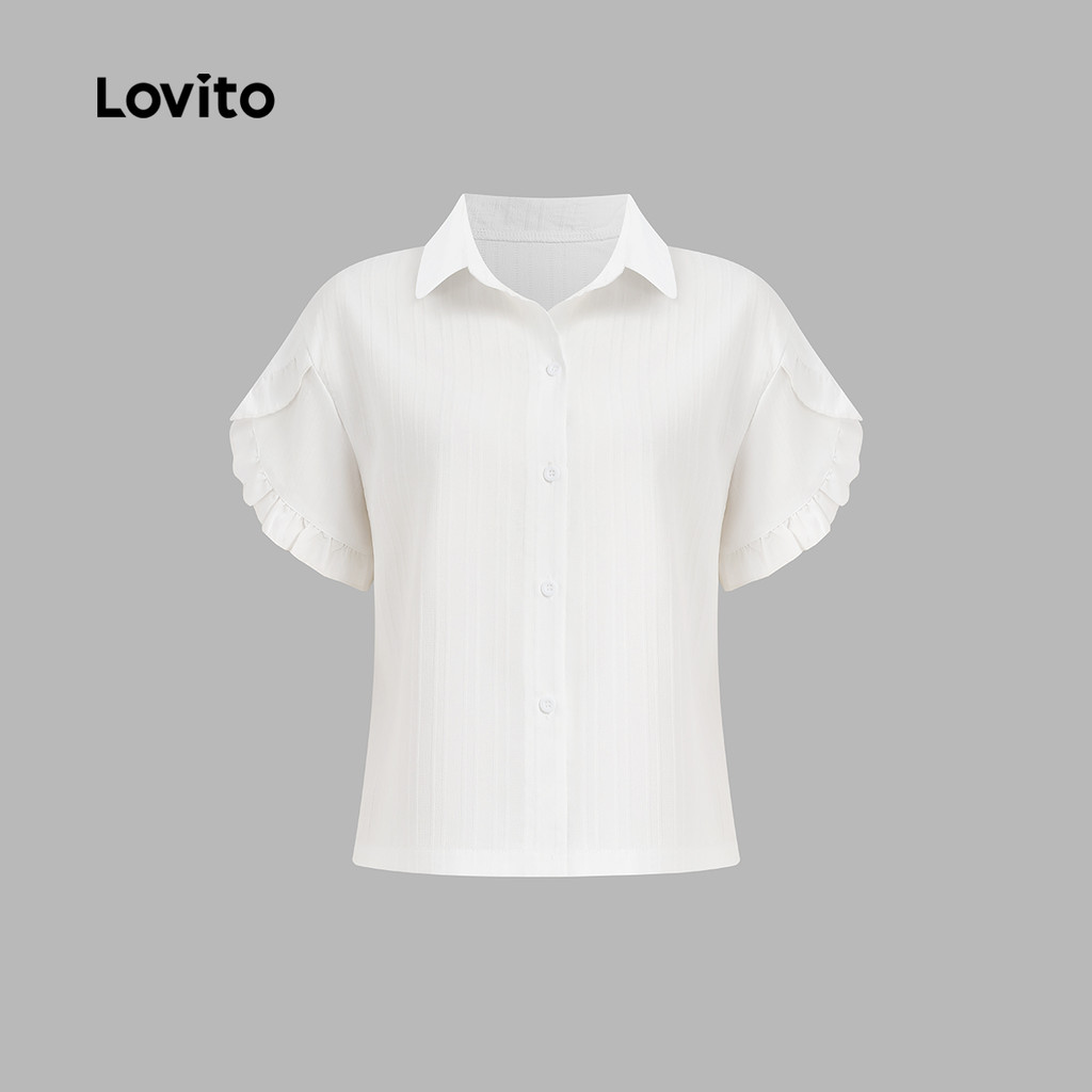 Lovito Blusa Fofa Jacquard com Babados Primavera/verão Blusa Branca para Mulheres L142LD441