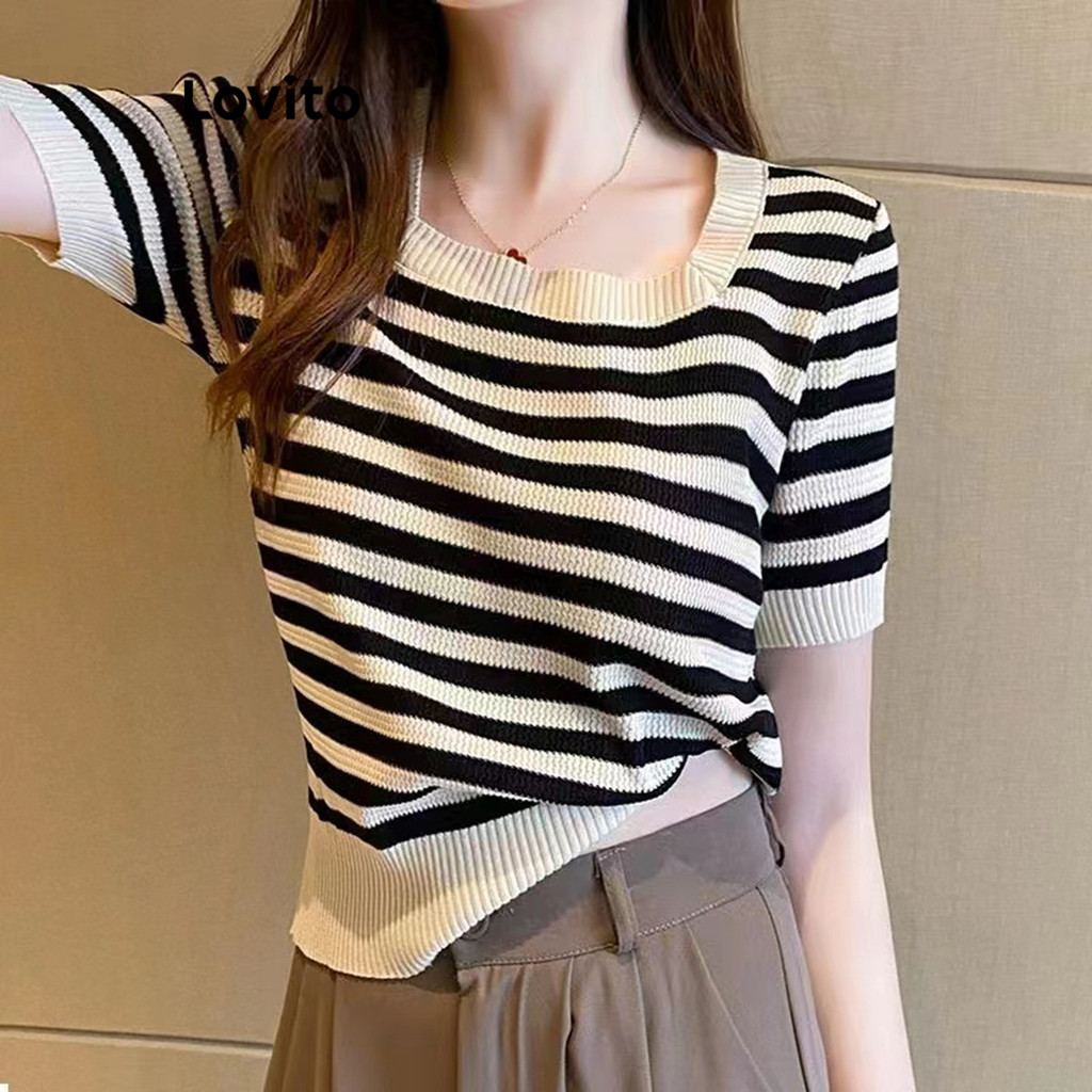 Lovito Blusa Listrada de Tricô Casual para Mulheres LNA20138 (Vermelho/Preto)