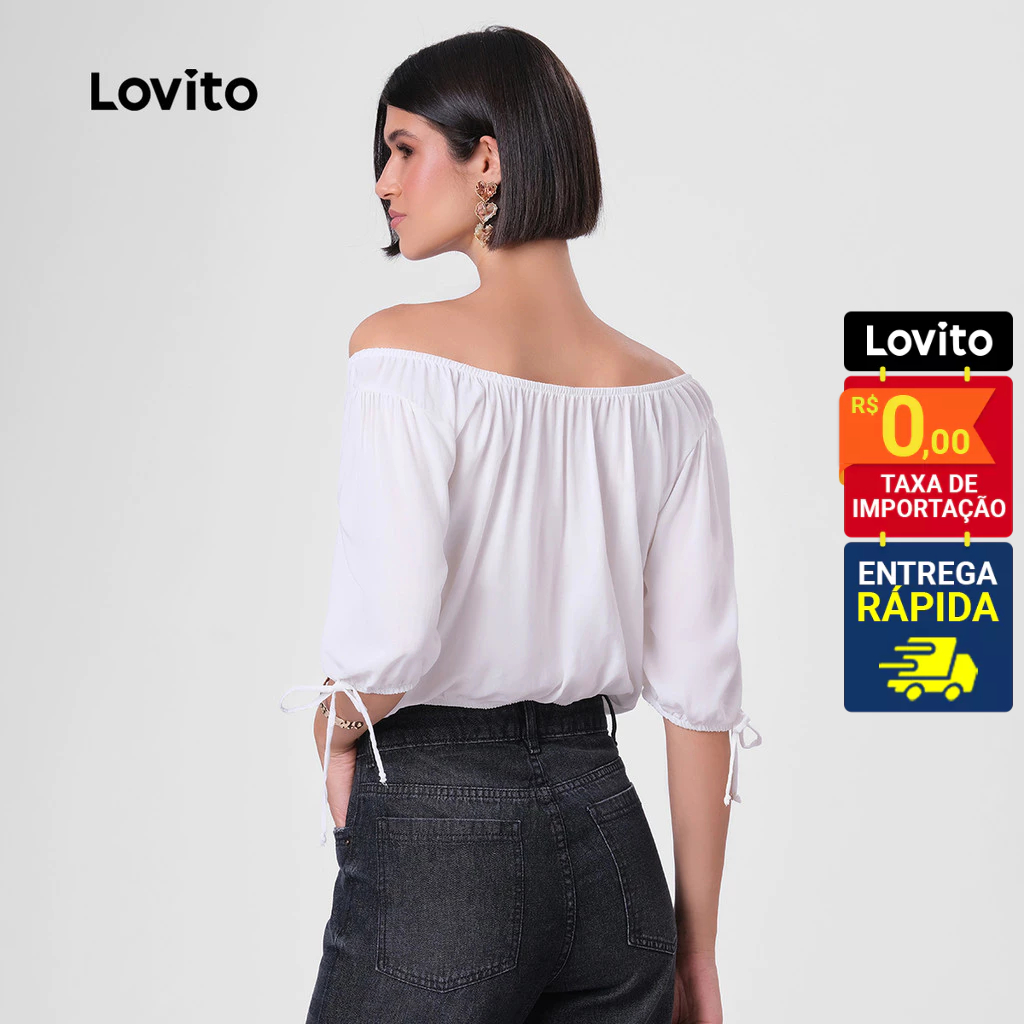 Lovito Blusa Ombro a Ombro com Babados Ciganinha Basica Feminina LB261BRL290