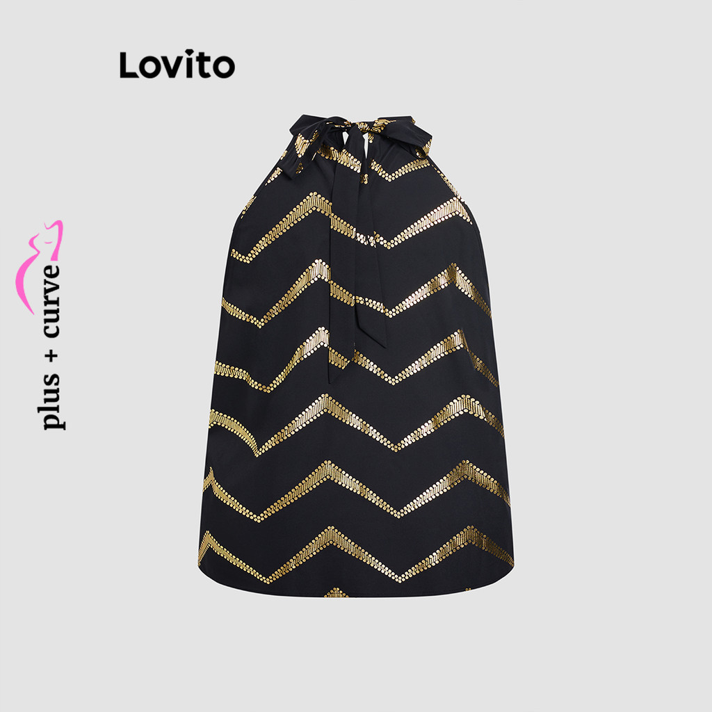 Lovito Blusa Plus Size Feminina Elegante Listrada com Babados LBL19317