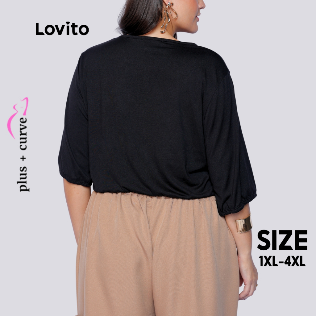 Lovito Blusa Plus Size Manga 3/4 Amarração Laços Frontais Decote V Moda Feminina LB264BRL293