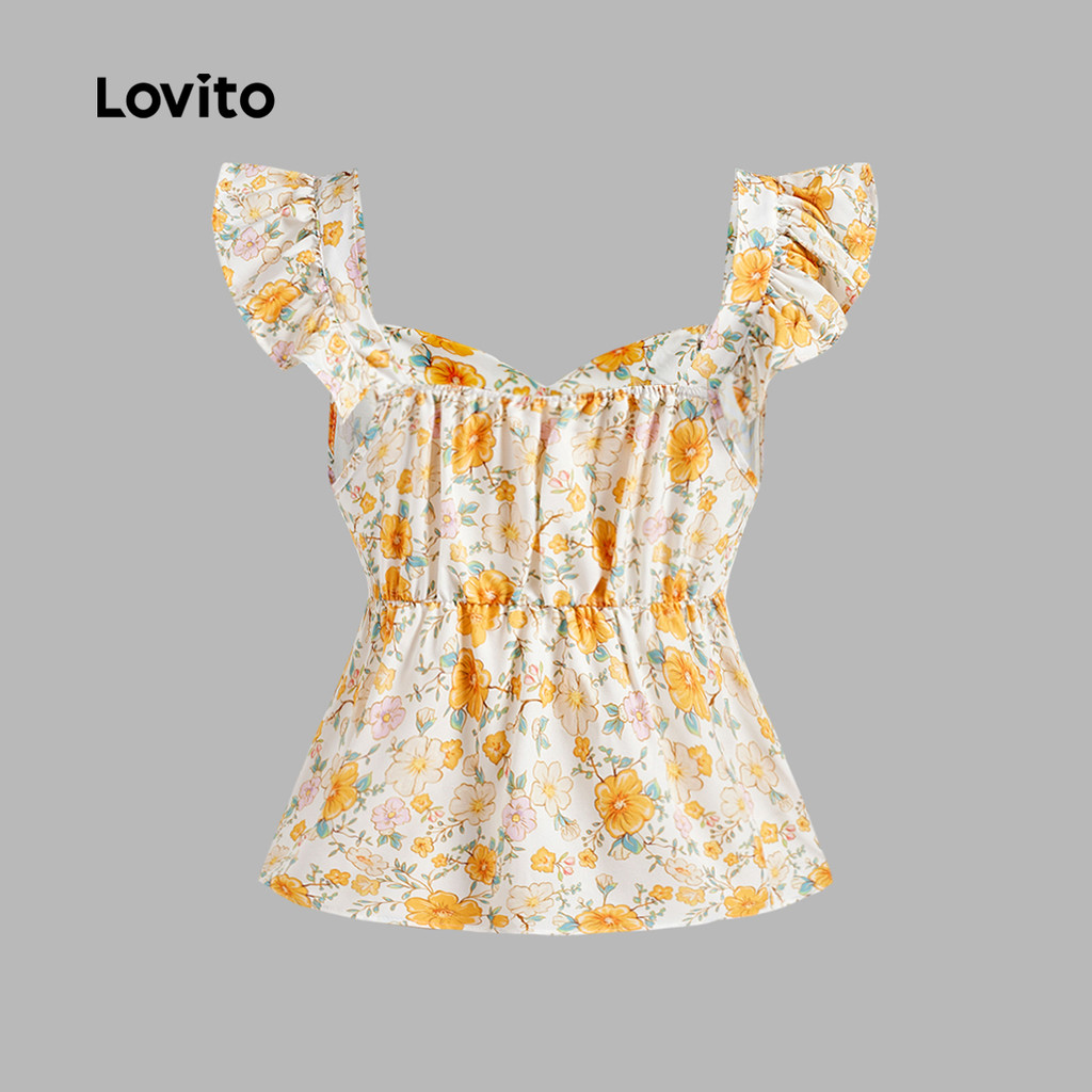 Lovito Blusa Regata Feminina Com Babados Florais Fofos Verão/primavera L128ED489