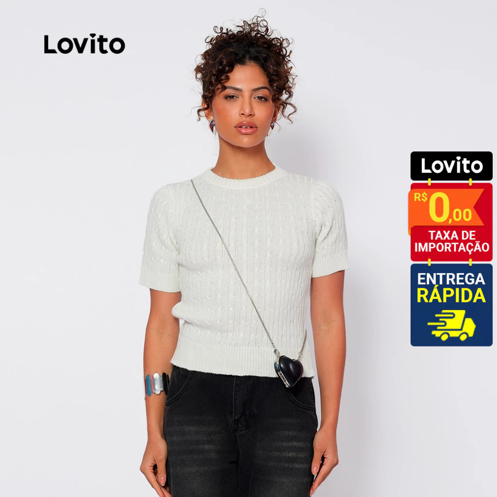 Lovito Blusa Tricô Lisa Casual Feminina LB392BRL421