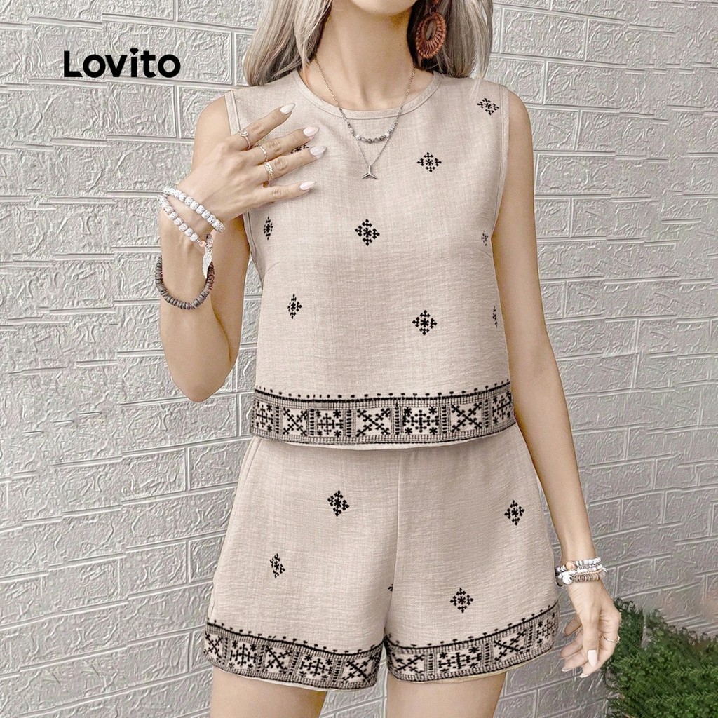 ✅DESTAQUES -❤️Padrão -❤️Sensação de mão suave -❤️Primavera e verão ✅DESCRIÇÕES Estampa / Padrão:Tribal print Estilo:Boho Tamanho Plus:No Material: Poliéster Composição:100%Polyester Tipo de modelagem:Loose Transparência:No Esticar:Non-stretch Feito na China ✅O PACOTE INCLUI 1XPartes superiores ou inferiores ✅INTRODUÇÃO LOVITO A Lovito é uma marca em crescimento que acredita no poder das meninas. Estamos comprometidos em oferecer opções de roupas fashion e acessíveis, para todos os estilos, necessidades e identidades. Acreditamos que a moda deve ser divertida, liberadora e fazer você se sentir incrível. Afinal, o melhor acessório para qualquer look é a autoconfiança! ✅NOTAS DE COMPRA Antes de comprar, dê uma olhadinha na tabela de medidas disponível no site. Lembre-se de que, por serem feitas manualmente, as medidas podem variar de 1 a 2 cm. As cores dos produtos também podem ter pequenas diferenças em relação às fotos, dependendo da iluminação e das configurações do seu dispositivo. Siga nossa loja e conheça novos itens e as melhores ofertas para você!! Se você tiver alguma dúvida, converse conosco e responderemos o mais rápido possível.