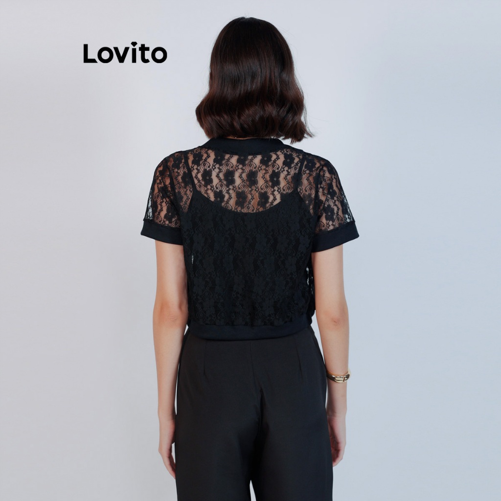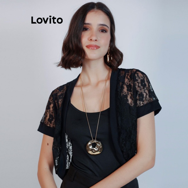Lovito Bolero Feminino Moda Modesta de Renda CDB17731803