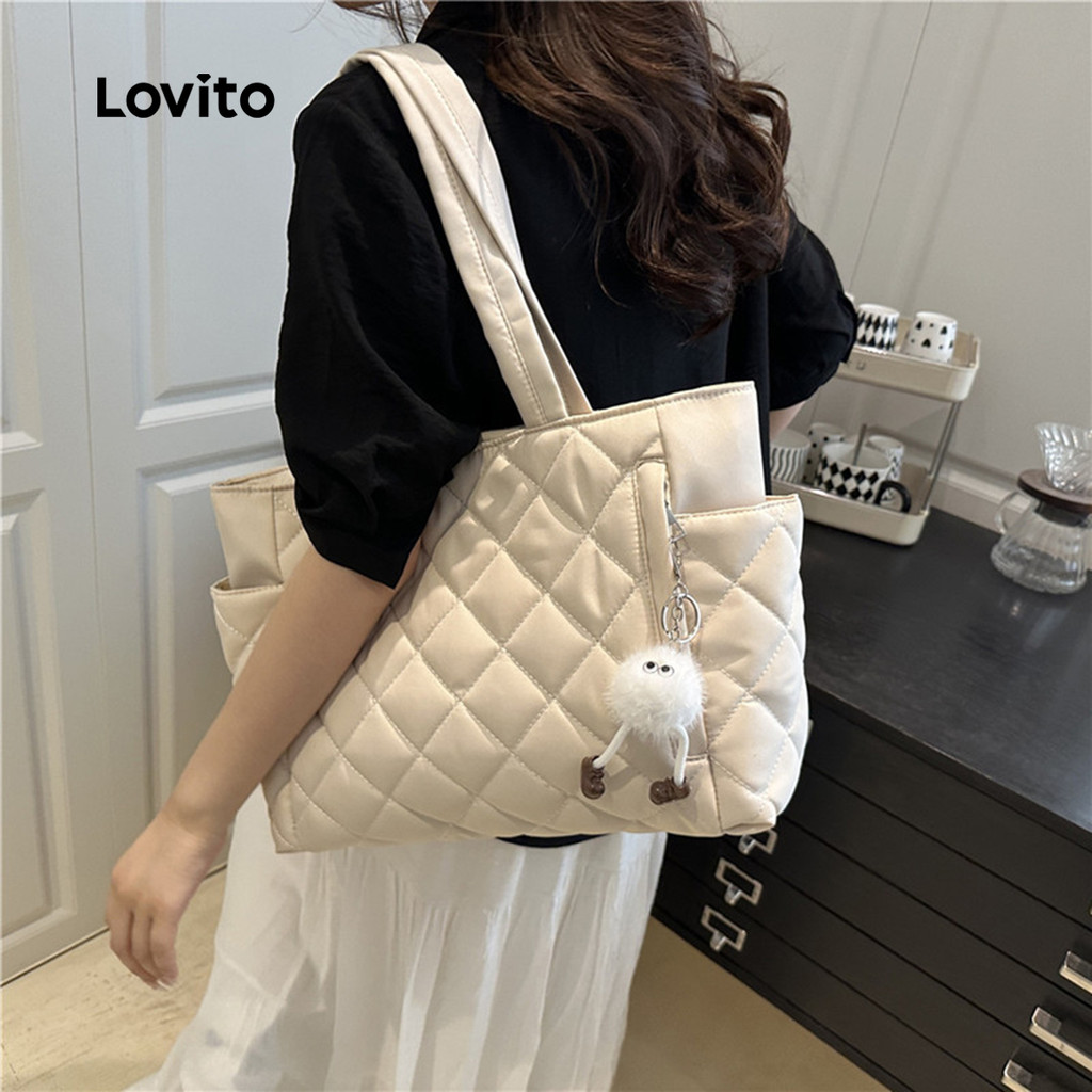Lovito Bolsa de Ombro Casual de Tecido Acolchoado Durável para mulheres LFA98022