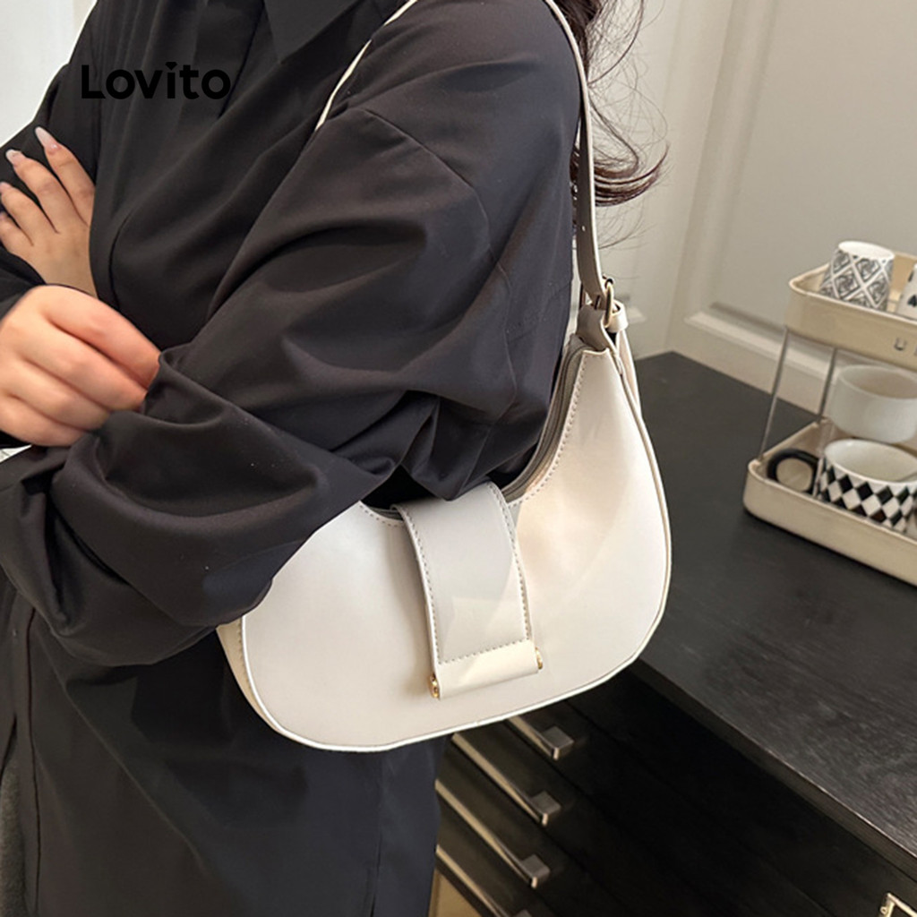 Lovito Bolsa de Ombro Feminina Pequena Meia-lua Cor Sólida LFA98035