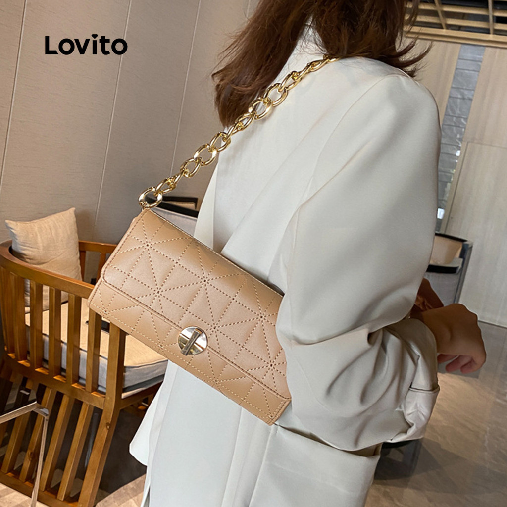 Lovito Bolsa de Ombro Pequena de Corrente de Metal Casual para mulheres LFA98016