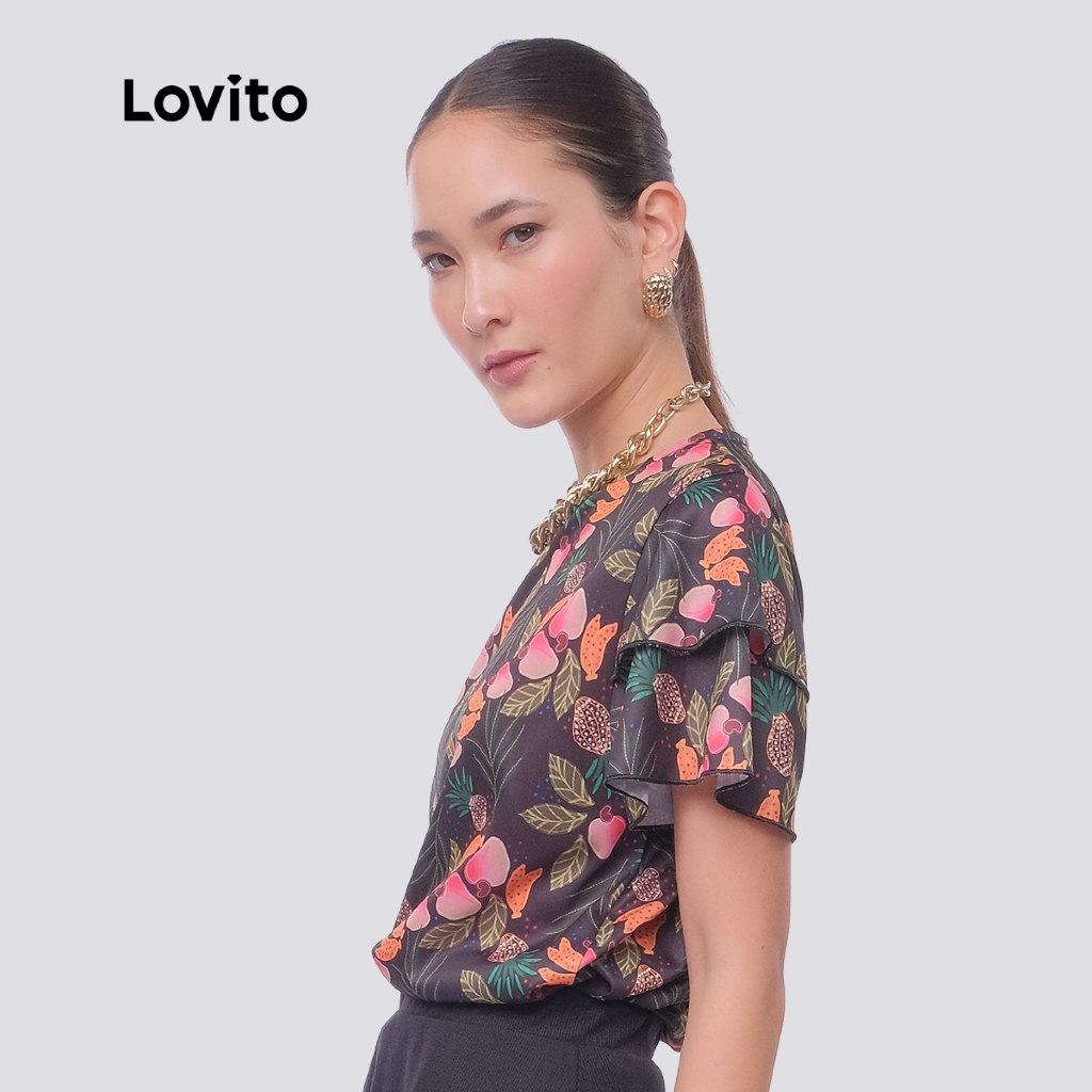 Lovito Bossa | Blusa Feminina Manga Curta Estampa Tropical Elegante BLB488BRL518