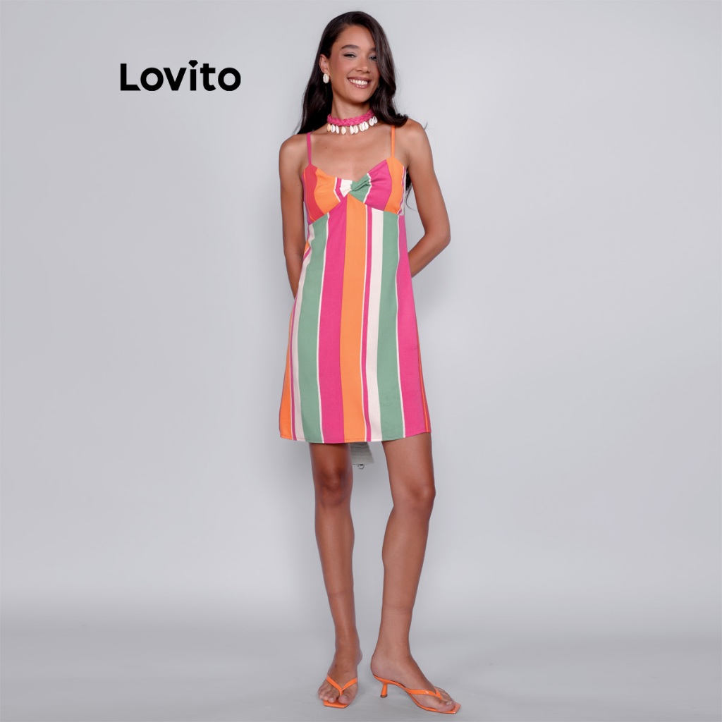 ✅DESTAQUES -❤️ Estampa Colorida -❤️ Detalhe no Busto -❤️ Fresco e Confortável ✅DESCRIÇÕES Estampa: Estampa Listrada Coleção: Verão Tamanho Plus: Não Composição: 100% Viscose Tipo de Modelagem: Regular Transparência: Sem Transparência Elasticidade: Sem Elasticidade Região de Origem: Brasil ✅O PACOTE INCLUI 1 Vestido ✅INTRODUÇÃO À LOVITO A Lovito é uma marca emergente que acredita no poder feminino, comprometida em oferecer opções de roupas elegantes e acessíveis para diferentes estilos, necessidades e identidades. Acreditamos que a moda deve ser divertida, libertadora e fazer você se sentir bem. Afinal, o melhor acessório para qualquer look é a autoconfiança. ✅NOTAS DE COMPRA Compare suas medidas com nossa tabela disponível no site. Lembre-se de que, por serem feitas manualmente, as medidas podem variar de 1 a 2 cm. As cores dos produtos também podem ter pequenas diferenças em relação às fotos, dependendo da iluminação e das configurações do seu dispositivo. Siga nossa loja e conheça novos itens e as melhores ofertas para você!! Se você tiver alguma dúvida, entre em contato conosco e responderemos o mais rápido possível.😊