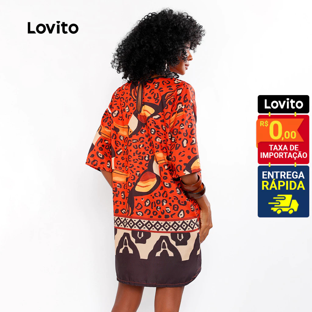 Lovito Bossa Vestido Estampado Feminino Casual Estilo Solto Manga 3/4 Moda Verão DRB480BRL510