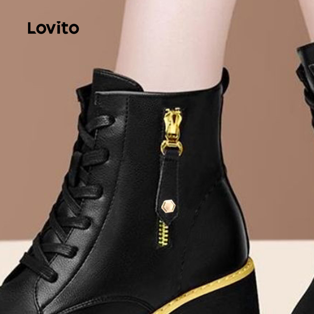Lovito Botas Casuais de Plataforma Martins Curtas Pretas para Todas As Estações LFA85033