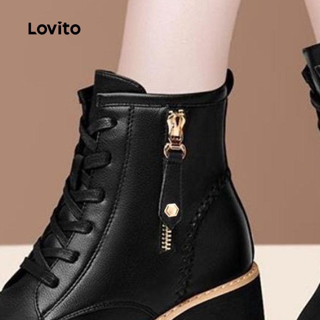 Lovito Botas Casuais Martin Botas Plataforma Sapatos Curtos para Todas As Estações Pretas LFA85033