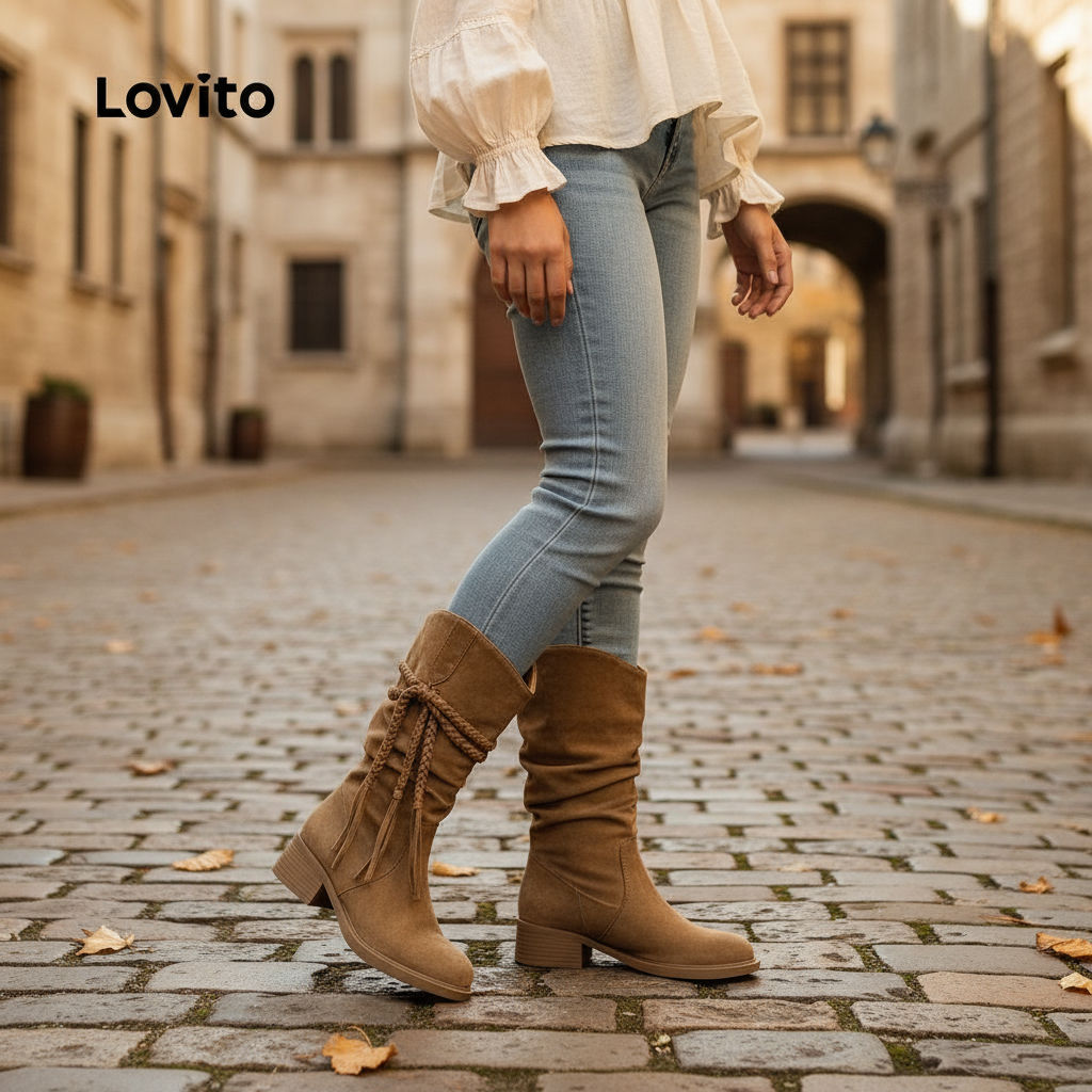 ✅DESTAQUES -❤️Borla -❤️Textura -❤️Simples -❤️anual ✅DESCRIÇÕES Estampa / Padrão:Liso Estilo:Elegante Material:PU Salto Alto:Sem saltos Feito na China ✅O PACOTE INCLUI 1XBotas ✅INTRODUÇÃO LOVITO A Lovito é uma marca em crescimento que acredita no poder das meninas. Estamos comprometidos em oferecer opções de roupas fashion e acessíveis, para todos os estilos, necessidades e identidades. Acreditamos que a moda deve ser divertida, liberadora e fazer você se sentir incrível. Afinal, o melhor acessório para qualquer look é a autoconfiança! ✅NOTAS DE COMPRA Antes de comprar, dê uma olhadinha na tabela de medidas disponível no site. Lembre-se de que, por serem feitas manualmente, as medidas podem variar de 1 a 2 cm. As cores dos produtos também podem ter pequenas diferenças em relação às fotos, dependendo da iluminação e das configurações do seu dispositivo. Siga nossa loja e conheça novos itens e as melhores ofertas para você!! Se você tiver alguma dúvida, converse conosco e responderemos o mais rápido possível.😊