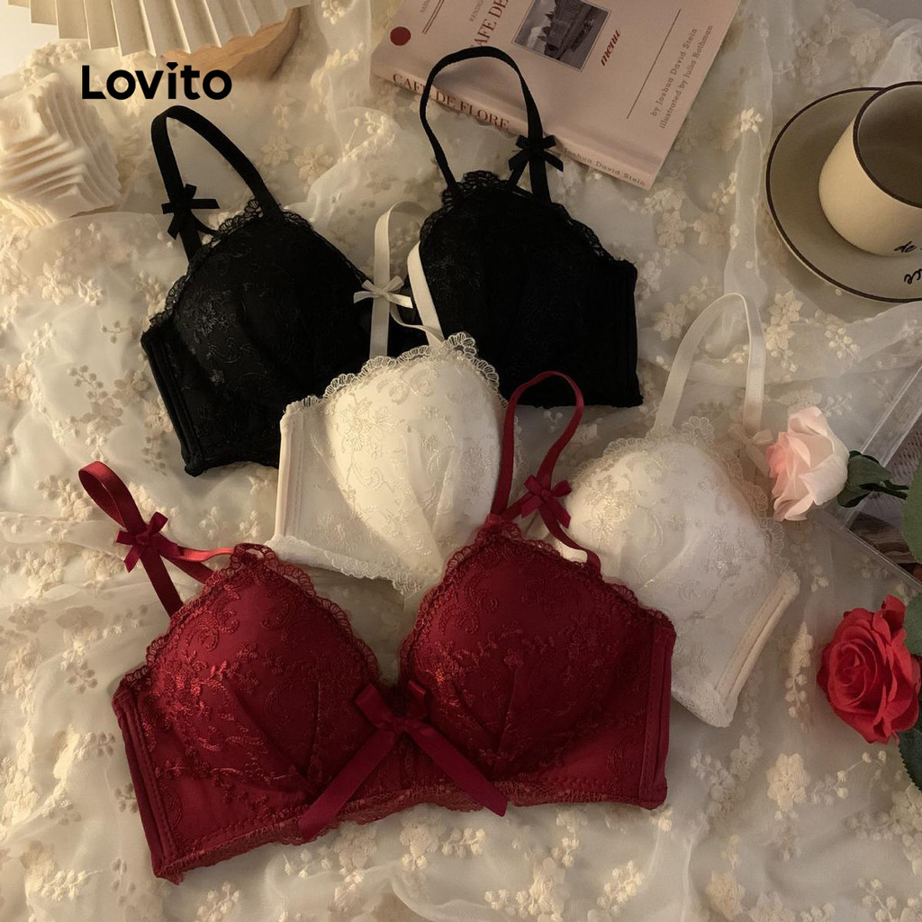 Lovito Bralette De Pele Macia Sexy Com Laço De Renda Para Mulheres LNE50359