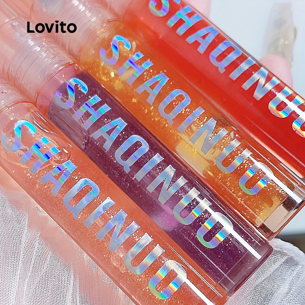 Lovito Brilho Labial Liso Casual, Vidro Transparente, Hidratante E Cuidado Labial Para Mulheres LCS09063