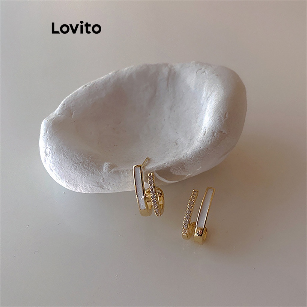 Lovito Brincos Casuais Brincos De Strass Lisos Para Mulheres LFA02079 (Ouro)