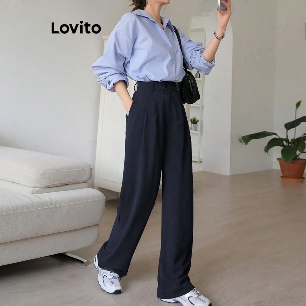 Lovito Calça Casual Calça Bolso Simples Para Mulheres L108ED136